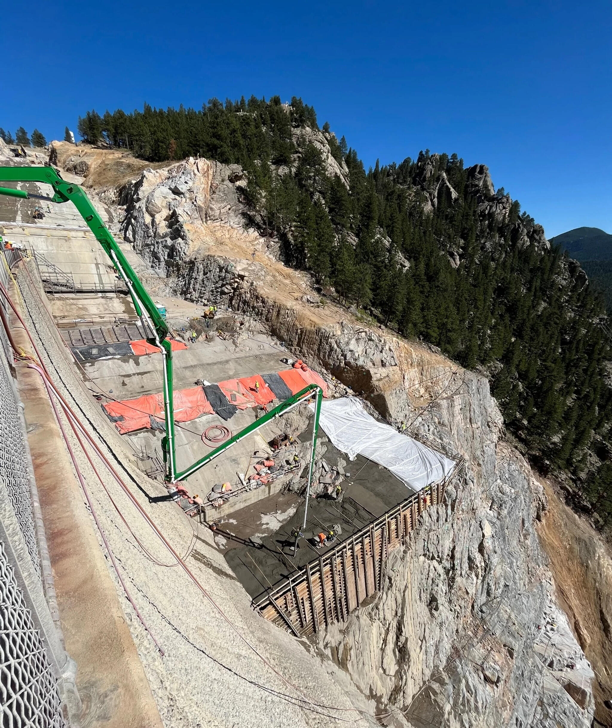 Over the next two years, Kiewit-Barnard Joint Venture will complete an expansion project that will raise the height of the existing Gross Reservoir dam, completed in 1954, by 131 feet, allowing the reservoir to nearly triple in size. The higher dam will expand the capacity of the reservoir in Boulder County by 77,000 acre-feet.