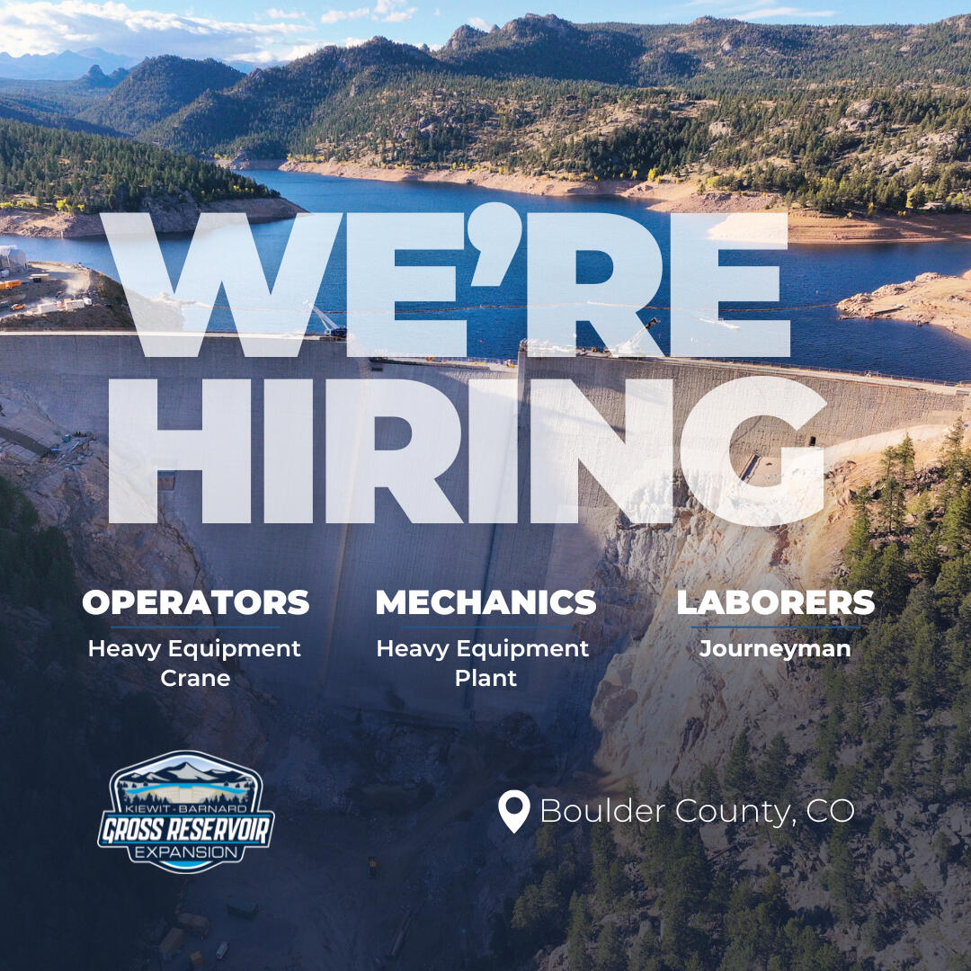 Hiring skilled trades to help build the Gross Reservoir Expansion.